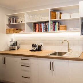 Feature shelves - in Vidaspace Veneer, with LED strip lighting.