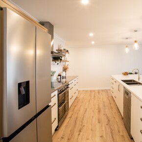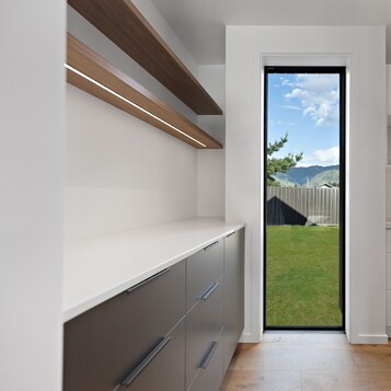 Large scullery, with a sink, plenty of storage room, and lots of bench space.
