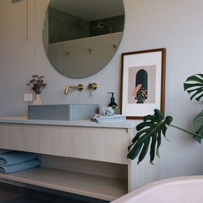 Bespoke bathroom vanities in both ensuite and main bathroom made with high-quality hardware.